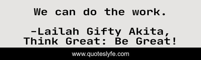 "Lailah Gifty Akita, Think Great: Be Great! Quotes." Quoteslyfe.com, 2025. Sat. 06 Dec. 2025. <https://www.quoteslyfe.com/quote/We-can-do-the-work-124114>.