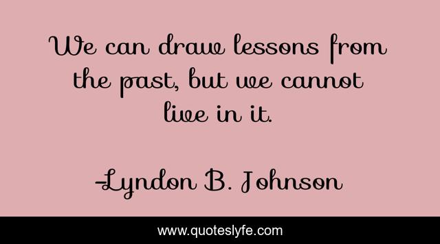 This page presents the quote "We can draw lessons from the past, but we cannot live in it.". Author of this quote is Lyndon B. Johnson. .