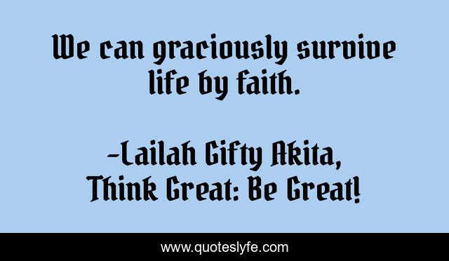 "Lailah Gifty Akita, Think Great: Be Great! Quotes." Quoteslyfe.com, 2025. Mon. 08 Dec. 2025. <https://www.quoteslyfe.com/quote/We-can-graciously-survive-life-by-faith-94881>.