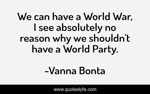 This page presents the quote "We can have a World War, I see absolutely no reason why we shouldn't have a World Party.". Author of this quote is Vanna Bonta. This quote is about world, why, party,.