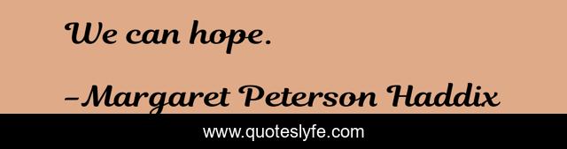 "Margaret Peterson Haddix Quotes." Quoteslyfe.com, 2025. Tue. 09 Dec. 2025. <https://www.quoteslyfe.com/quote/We-can-hope-202867>.