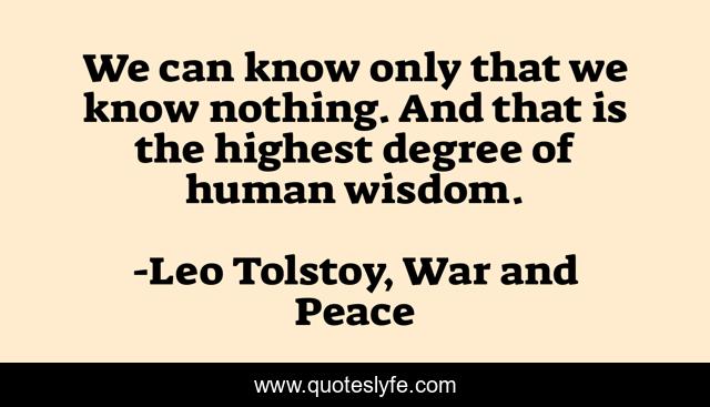 This page presents the quote "We can know only that we know nothing. And that is the highest degree of human wisdom.". Author of this quote is Leo Tolstoy, War and Peace. This quote is about nothing, humanity, wisdom,.