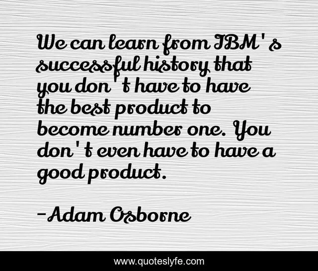 This page presents the quote "We can learn from IBM's successful history that you don't have to have the best product to become number one. You don't even have to have a good product.". Author of this quote is Adam Osborne. This quote is about successful, good, best,.