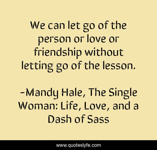 This page presents the quote "We can let go of the person or love or friendship without letting go of the lesson.". Author of this quote is Mandy Hale, The Single Woman: Life, Love, and a Dash of Sass. This quote is about lessons, relationships, bigger-picture, love, letting-go, live-and-learn, positive-thinking, let-go, life-lessons,.