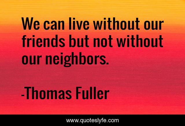 This page presents the quote "We can live without our friends but not without our neighbors.". Author of this quote is Thomas Fuller. .