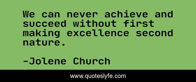 This page presents the quote "We can never achieve and succeed without first making excellence second nature.". Author of this quote is Jolene Church. This quote is about enthusiasm, entrepreneurial, courage, excellence, inspirational,.