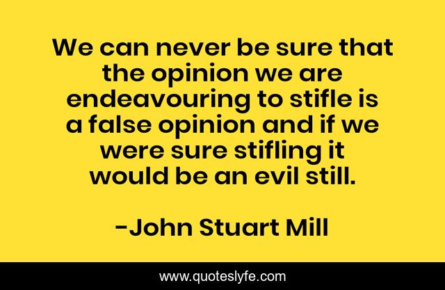This page presents the quote "We can never be sure that the opinion we are endeavouring to stifle is a false opinion and if we were sure stifling it would be an evil still.". Author of this quote is John Stuart Mill. .