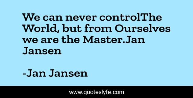 This page presents the quote "We can never controlThe World, but from Ourselves we are the Master.Jan Jansen". Author of this quote is Jan Jansen. .