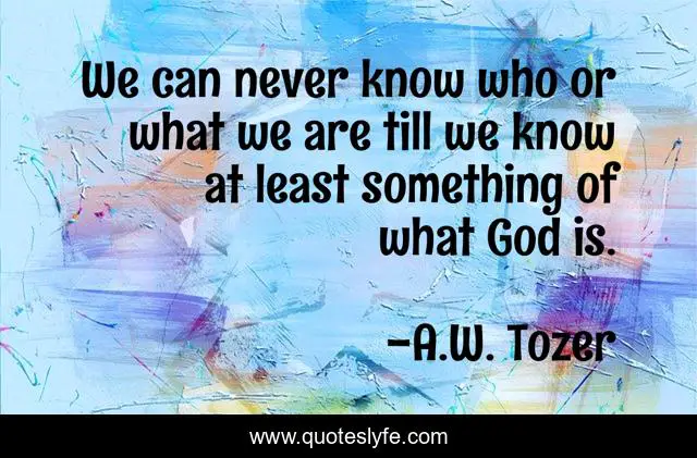 This page presents the quote "We can never know who or what we are till we know at least something of what God is.". Author of this quote is A.W. Tozer. .