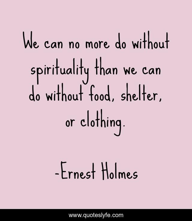 This page presents the quote "We can no more do without spirituality than we can do without food, shelter, or clothing.". Author of this quote is Ernest Holmes. This quote is about shelter, faith, clothing,.