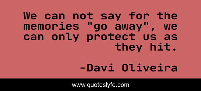 This page presents the quote "We can not say for the memories "go away", we can only protect us as they hit.". Author of this quote is Davi Oliveira. This quote is about memories, remember-your-past, painful-memories, pain,.