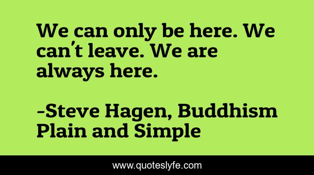 This page presents the quote "We can only be here. We can't leave. We are always here.". Author of this quote is Steve Hagen, Buddhism Plain and Simple. This quote is about zen, zen-buddhism,.