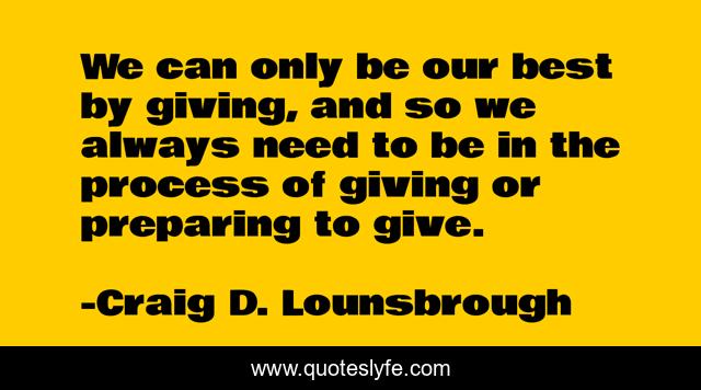This page presents the quote "We can only be our best by giving, and so we always need to be in the process of giving or preparing to give.". Author of this quote is Craig D. Lounsbrough. .