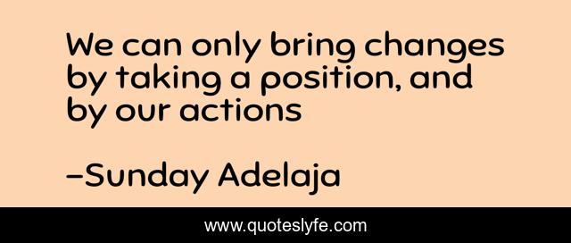 This page presents the quote "We can only bring changes by taking a position, and by our actions". Author of this quote is Sunday Adelaja. This quote is about bring, changes, actions, position,.