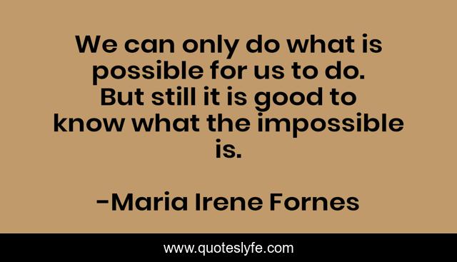 "Maria Irene Fornes Quotes." Quoteslyfe.com, 2025. Fri. 05 Dec. 2025. <https://www.quoteslyfe.com/quote/We-can-only-do-what-is-possible-275322>.