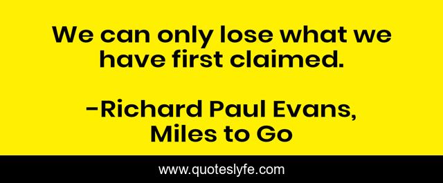 This page presents the quote "We can only lose what we have first claimed.". Author of this quote is Richard Paul Evans, Miles to Go. .