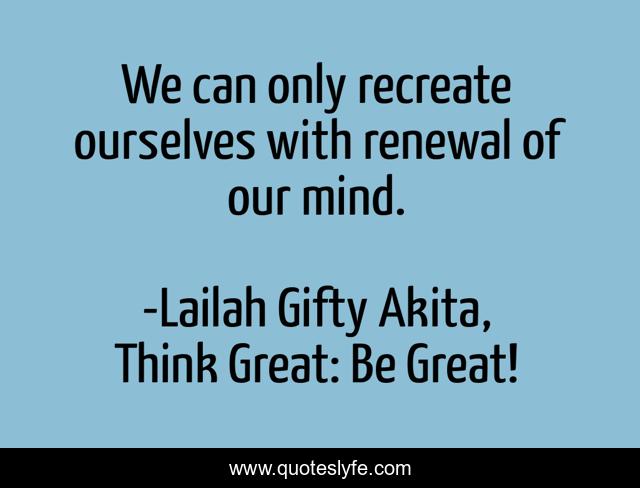 "Lailah Gifty Akita, Think Great: Be Great! Quotes." Quoteslyfe.com, 2025. Sat. 06 Dec. 2025. <https://www.quoteslyfe.com/quote/We-can-only-recreate-ourselves-with-renewal-94955>.