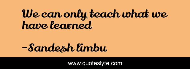 This page presents the quote "We can only teach what we have learned". Author of this quote is Sandesh limbu. This quote is about psychology, change, wisdom,.
