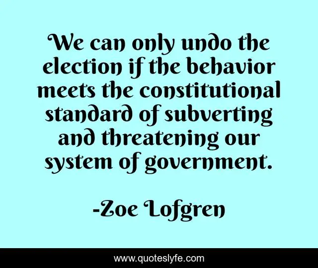 This page presents the quote "We can only undo the election if the behavior meets the constitutional standard of subverting and threatening our system of government.". Author of this quote is Zoe Lofgren. This quote is about election, behavior, system,.