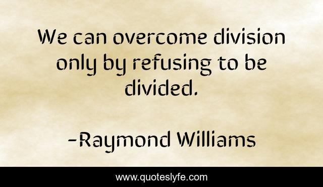 This page presents the quote "We can overcome division only by refusing to be divided.". Author of this quote is Raymond Williams. This quote is about city, socialism, humanism, country,.