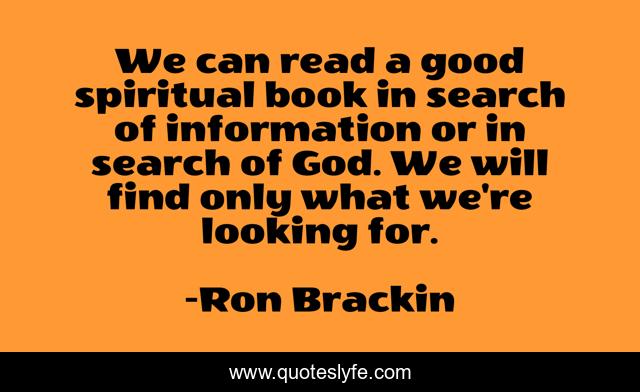 This page presents the quote "We can read a good spiritual book in search of information or in search of God. We will find only what we're looking for.". Author of this quote is Ron Brackin. This quote is about spirituality, books, reading-skills, relationship-with-god, writing,.