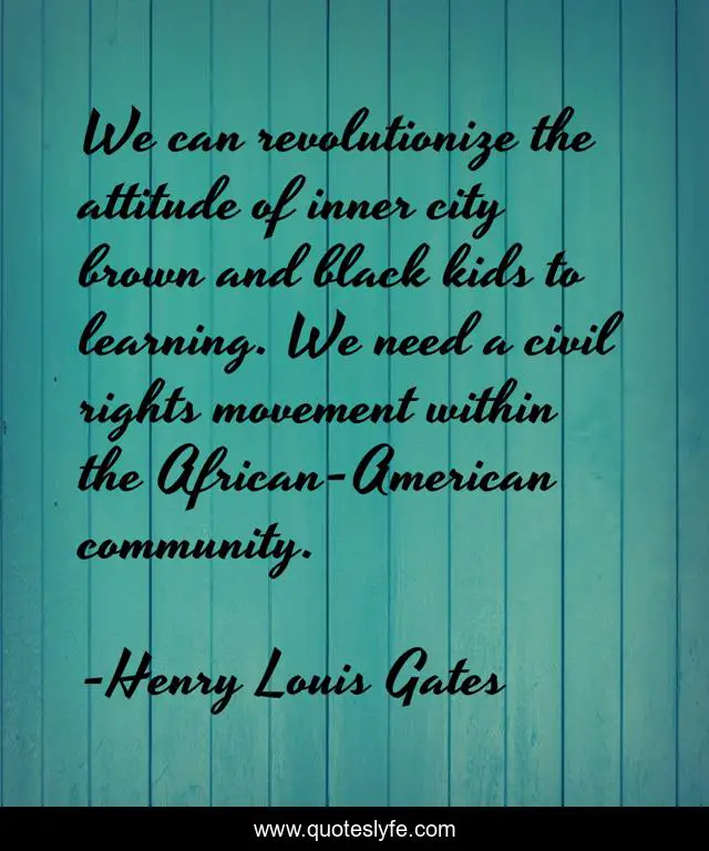 This page presents the quote "We can revolutionize the attitude of inner city brown and black kids to learning. We need a civil rights movement within the African-American community.". Author of this quote is Henry Louis Gates. This quote is about city, learning, community,.