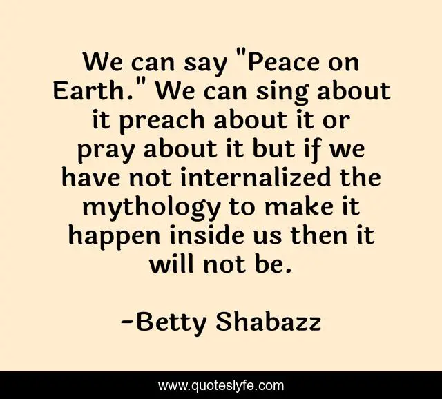 This page presents the quote "We can say "Peace on Earth." We can sing about it preach about it or pray about it but if we have not internalized the mythology to make it happen inside us then it will not be.". Author of this quote is Betty Shabazz. .