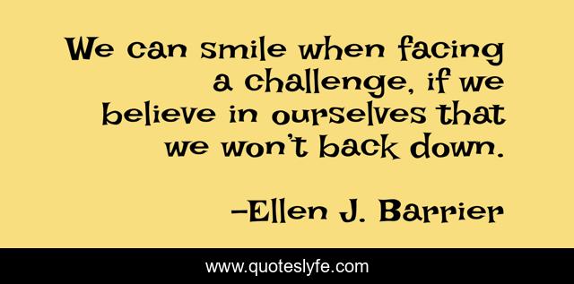 This page presents the quote "We can smile when facing a challenge, if we believe in ourselves that we won’t back down.". Author of this quote is Ellen J. Barrier. .