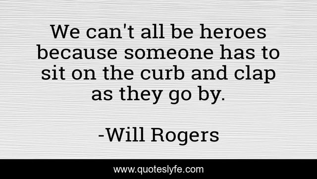 This page presents the quote "We can't all be heroes because someone has to sit on the curb and clap as they go by.". Author of this quote is Will Rogers. .