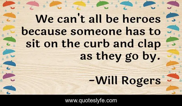 This page presents the quote "We can't all be heroes because someone has to sit on the curb and clap as they go by.". Author of this quote is Will Rogers. .