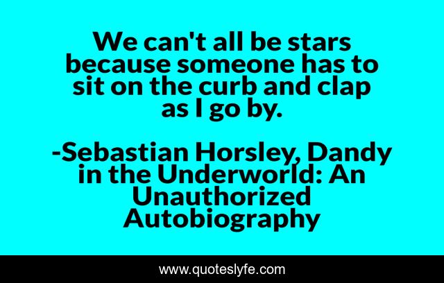 This page presents the quote "We can't all be stars because someone has to sit on the curb and clap as I go by.". Author of this quote is Sebastian Horsley, Dandy in the Underworld: An Unauthorized Autobiography. This quote is about celebrity, ego,.