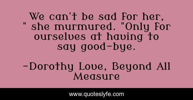 "Dorothy Love, Beyond All Measure Quotes." Quoteslyfe.com, 2025. Fri. 05 Dec. 2025. <https://www.quoteslyfe.com/quote/We-can-t-be-sad-for-her-21577>.