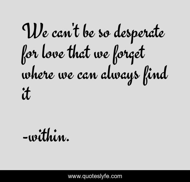 This page presents the quote "We can't be so desperate for love that we forget where we can always find it". Author of this quote is within.. .
