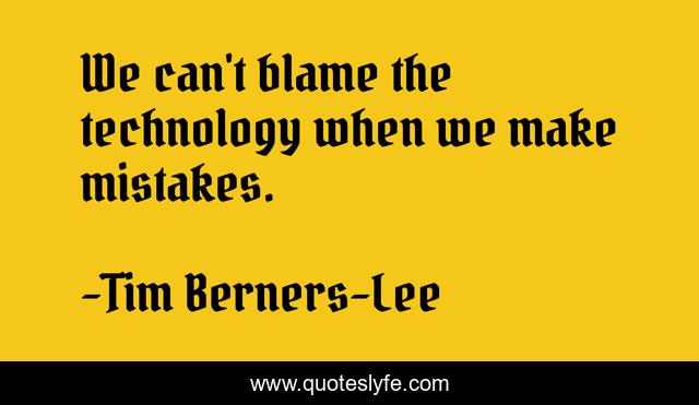 This page presents the quote "We can't blame the technology when we make mistakes.". Author of this quote is Tim Berners-Lee. This quote is about blame, make, mistakes,.