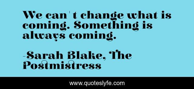 "Sarah Blake, The Postmistress Quotes." Quoteslyfe.com, 2025. Fri. 05 Dec. 2025. <https://www.quoteslyfe.com/quote/We-can-t-change-what-is-coming-153945>.