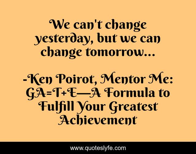 "Ken Poirot, Mentor Me: GA=T+E—A Formula to Fulfill Your Greatest Achievement Quotes." Quoteslyfe.com, 2025. Fri. 05 Dec. 2025. <https://www.quoteslyfe.com/quote/We-can-t-change-yesterday-but-we-115912>.