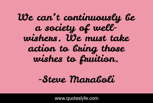 This page presents the quote "We can’t continuously be a society of well-wishers. We must take action to bring those wishes to fruition.". Author of this quote is Steve Maraboli. This quote is about confidence, success, wishing, motivational, fruition, society, optimistic, positive, action,.