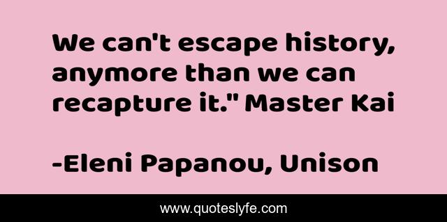 This page presents the quote "We can't escape history, anymore than we can recapture it." Master Kai". Author of this quote is Eleni Papanou, Unison. .