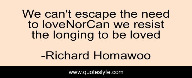 This page presents the quote "We can't escape the need to loveNorCan we resist the longing to be loved". Author of this quote is Richard Homawoo. This quote is about love, affection,.