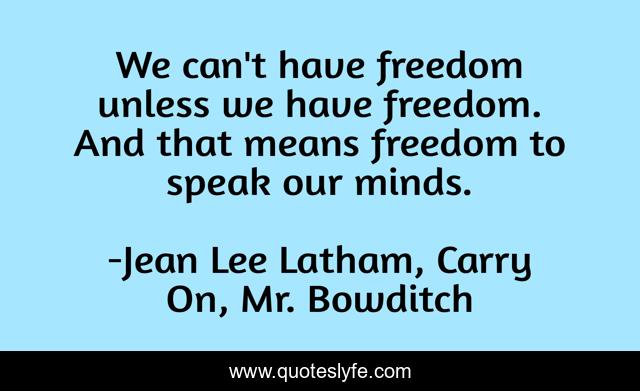 "Jean Lee Latham, Carry On, Mr. Bowditch Quotes." Quoteslyfe.com, 2025. Fri. 05 Dec. 2025. <https://www.quoteslyfe.com/quote/We-can-t-have-freedom-unless-we-54907>.