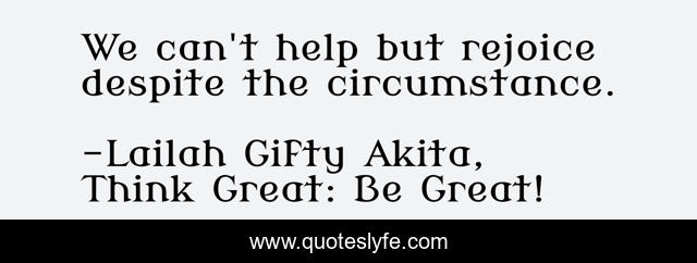 "Lailah Gifty Akita, Think Great: Be Great! Quotes." Quoteslyfe.com, 2025. Fri. 05 Dec. 2025. <https://www.quoteslyfe.com/quote/We-can-t-help-but-rejoice-despite-140502>.