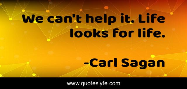 This page presents the quote "We can't help it. Life looks for life.". Author of this quote is Carl Sagan. .