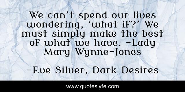 This page presents the quote "We can’t spend our lives wondering, ‘what if?’ We must simply make the best of what we have. -Lady Mary Wynne-Jones". Author of this quote is Eve Silver, Dark Desires. .
