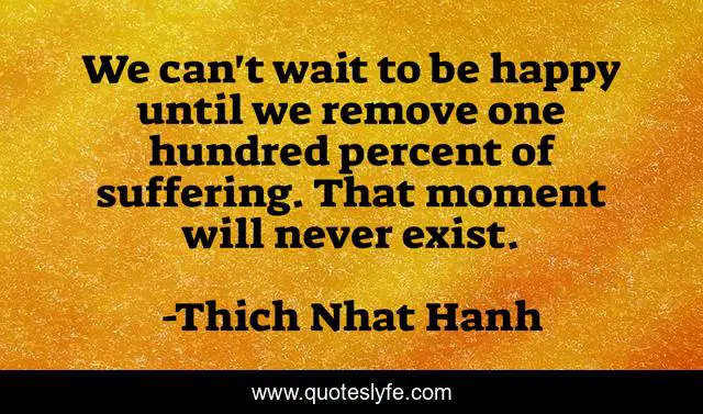 This page presents the quote "We can't wait to be happy until we remove one hundred percent of suffering. That moment will never exist.". Author of this quote is Thich Nhat Hanh. This quote is about letting-go, happiness,.