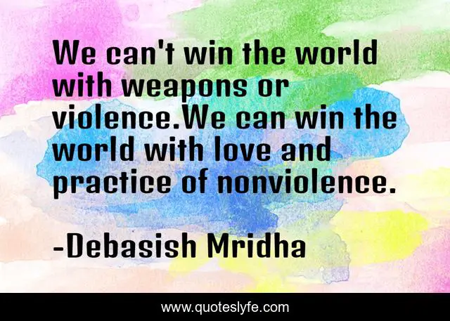 This page presents the quote "We can't win the world with weapons or violence.We can win the world with love and practice of nonviolence.". Author of this quote is Debasish Mridha. This quote is about nonviolence, life, violence, love, mridha, philosophy, weapons, debasish, world,.