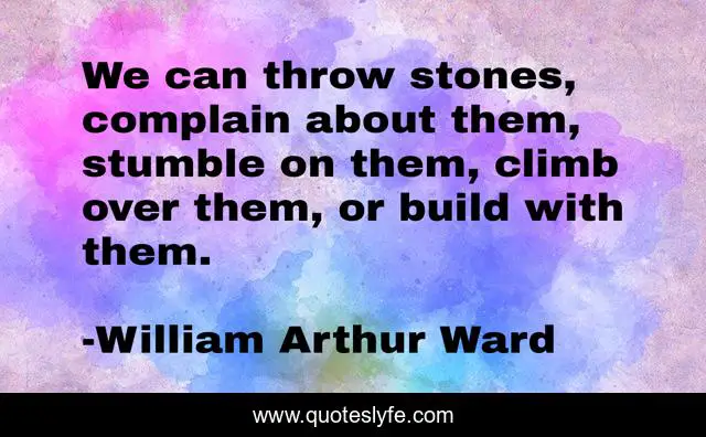 "William Arthur Ward Quotes." Quoteslyfe.com, 2025. Sun. 07 Dec. 2025. <https://www.quoteslyfe.com/quote/We-can-throw-stones-complain-about-them-95609>.