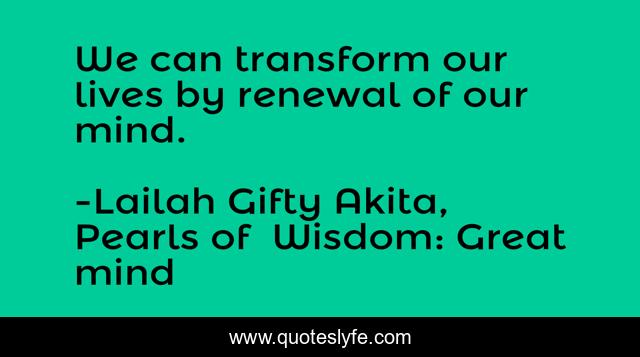 "Lailah Gifty Akita, Pearls of Wisdom: Great mind Quotes." Quoteslyfe.com, 2025. Fri. 05 Dec. 2025. <https://www.quoteslyfe.com/quote/We-can-transform-our-lives-by-renewal-87220>.
