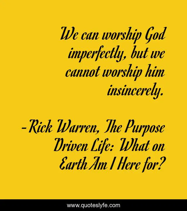 "Rick Warren, The Purpose Driven Life: What on Earth Am I Here for? Quotes." Quoteslyfe.com, 2025. Sat. 06 Dec. 2025. <https://www.quoteslyfe.com/quote/We-can-worship-God-imperfectly-but-we-193851>.