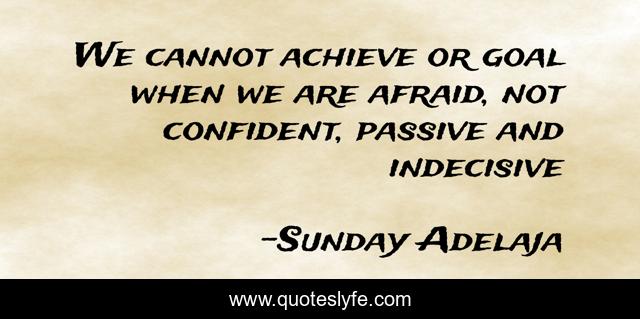This page presents the quote "We cannot achieve or goal when we are afraid, not confident, passive and indecisive". Author of this quote is Sunday Adelaja. This quote is about indecisive, life, afraid, goal, mission, calling, passive, confident, purpose,.