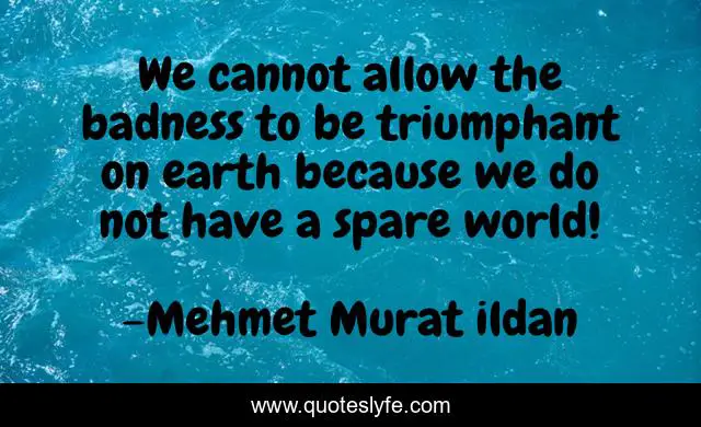 This page presents the quote "We cannot allow the badness to be triumphant on earth because we do not have a spare world!". Author of this quote is Mehmet Murat ildan. .